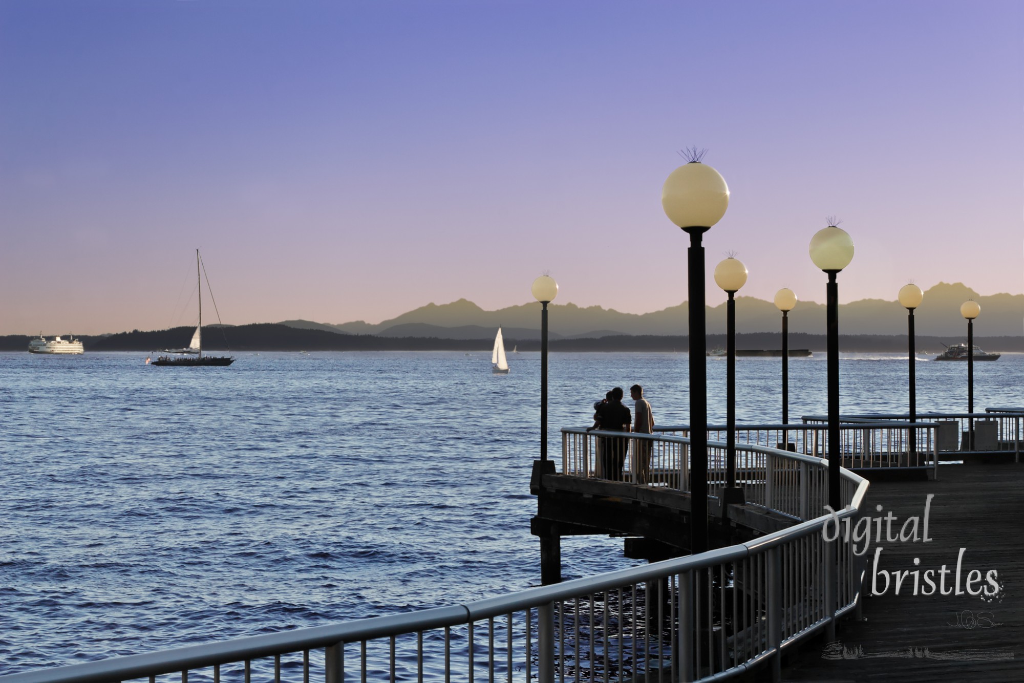 Elliott Bay at dusk - Sun on its way down over the evening "rush" in Elliott Bay, Seattle